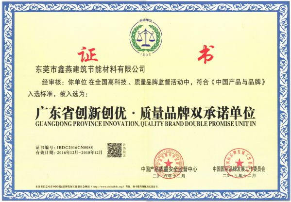 廣東省創新創優·質量品牌雙承諾單位